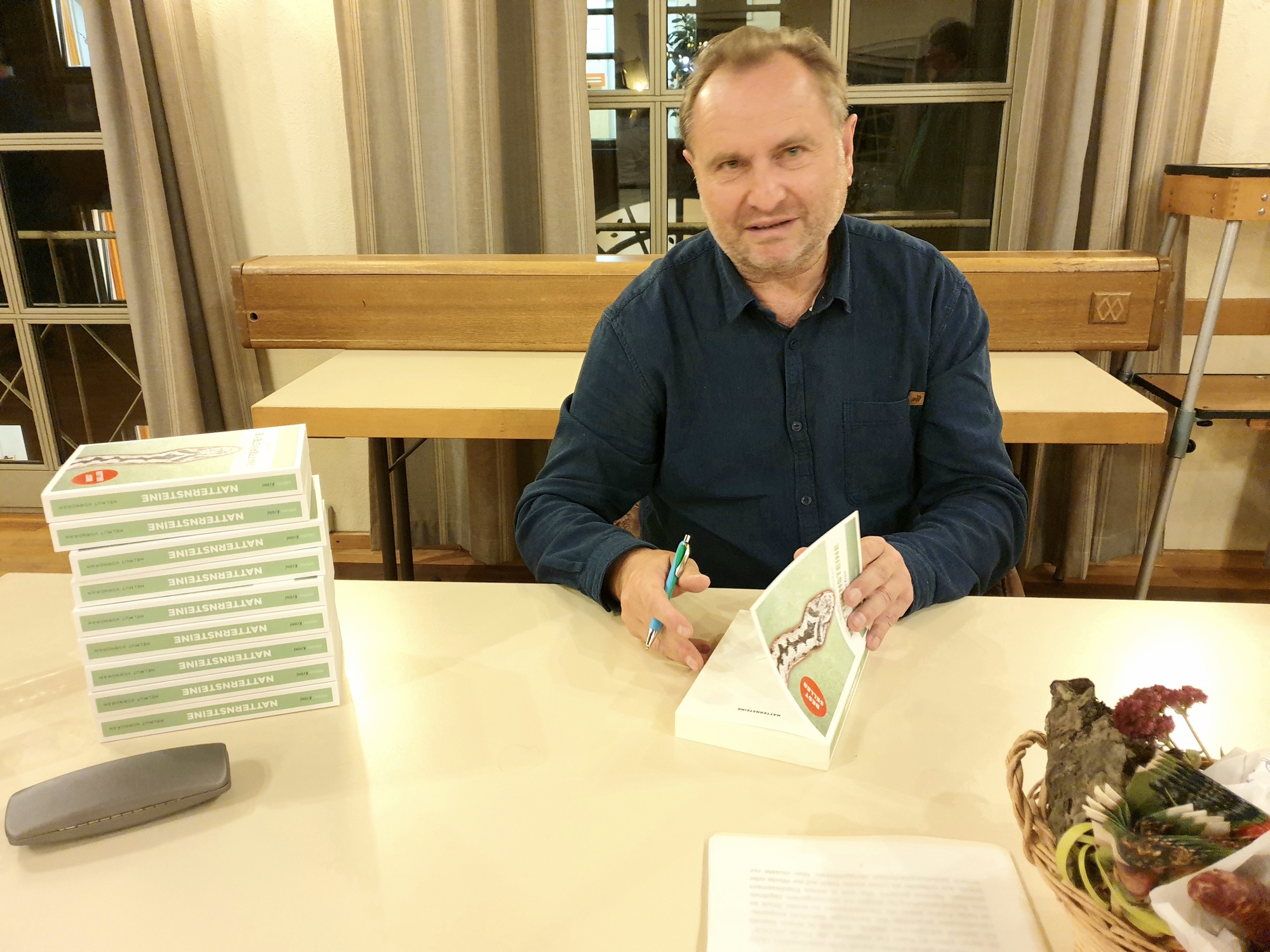 Auf Einladung der Bücherei Mariä Himmelfahrt Bad Neustadt gab Helmut Vorndran erstmals wieder eine Vorlesung in seiner Heimatstadt. Die Vorstellung war schnell ausverkauft und die Liebhaber seiner skurrilen Frankenkrimis kamen mit den gelesenen Ausschnitten aus dem neuesten Werk „Natternsteine“ voll auf ihre Kosten.