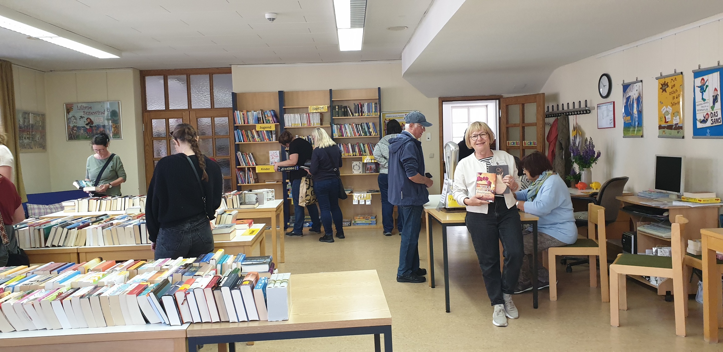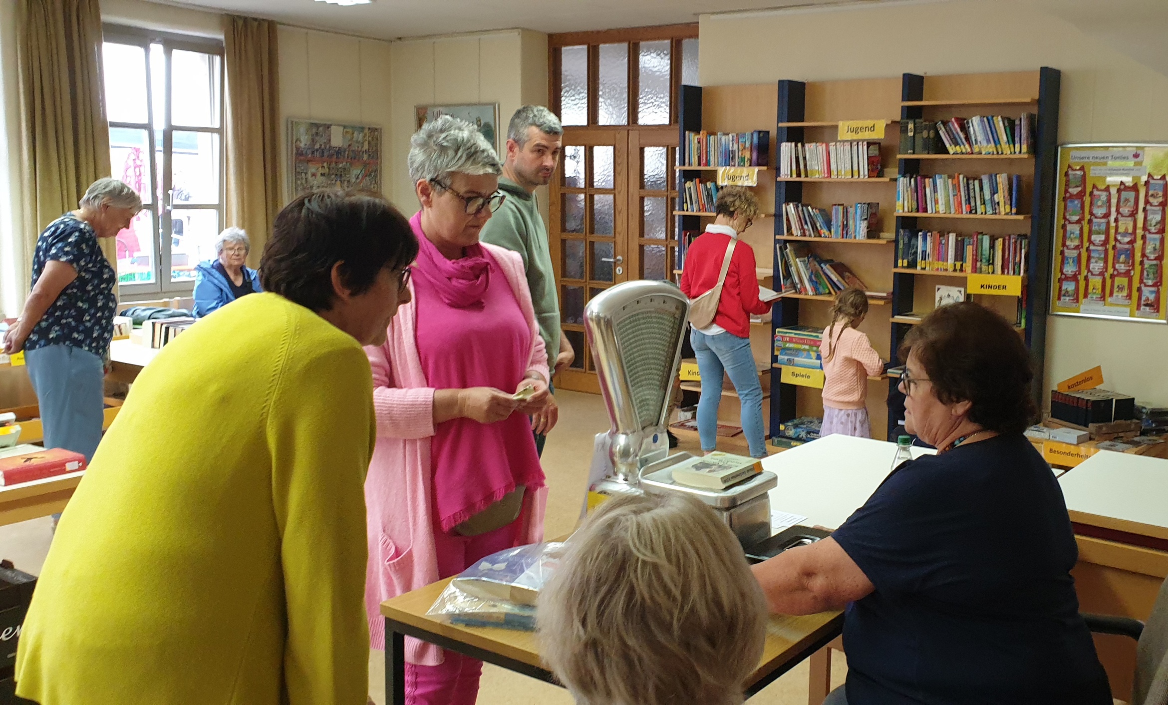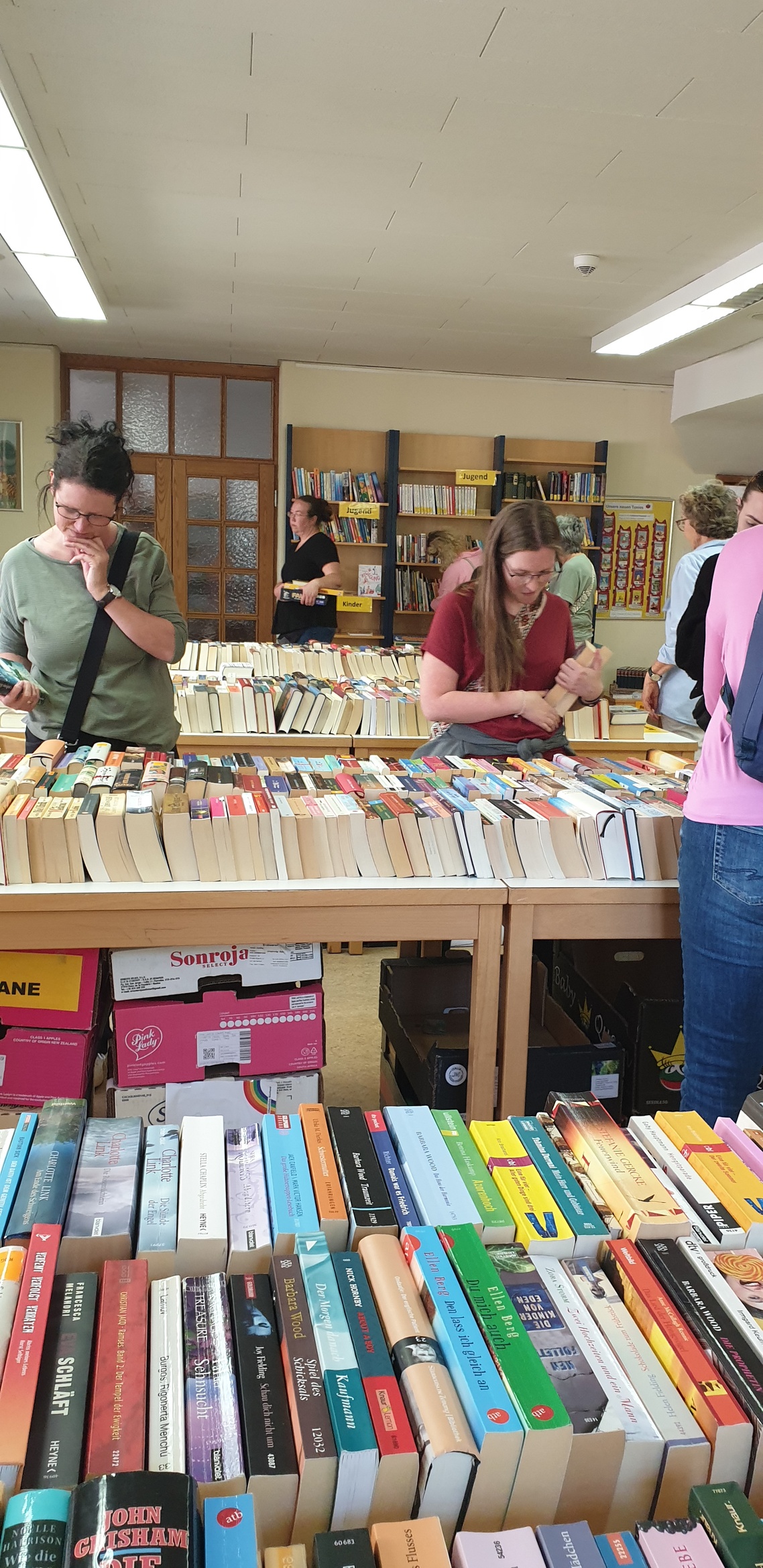 Rund um das bunte Wochenende auf dem Kirchplatz mit dem Afrika-Festival am Samstag und dem gemeinsamen Pfarrfest-Sonntag bot unsere Bücherei wieder an beiden Tagen einen großen Bücherflohmarkt im Gemeindehaus an. Schöne Literatur, spannende Krimis und gute Unterhaltung waren günstig zu erwerben. Ebenso eine große Anzahl gut erhaltener Kinderspiele. Unser Angebot wurde sehr rege angenommen und viele Besucherinnen und Besucher hatten ihre Freude an der großen Auswahl.