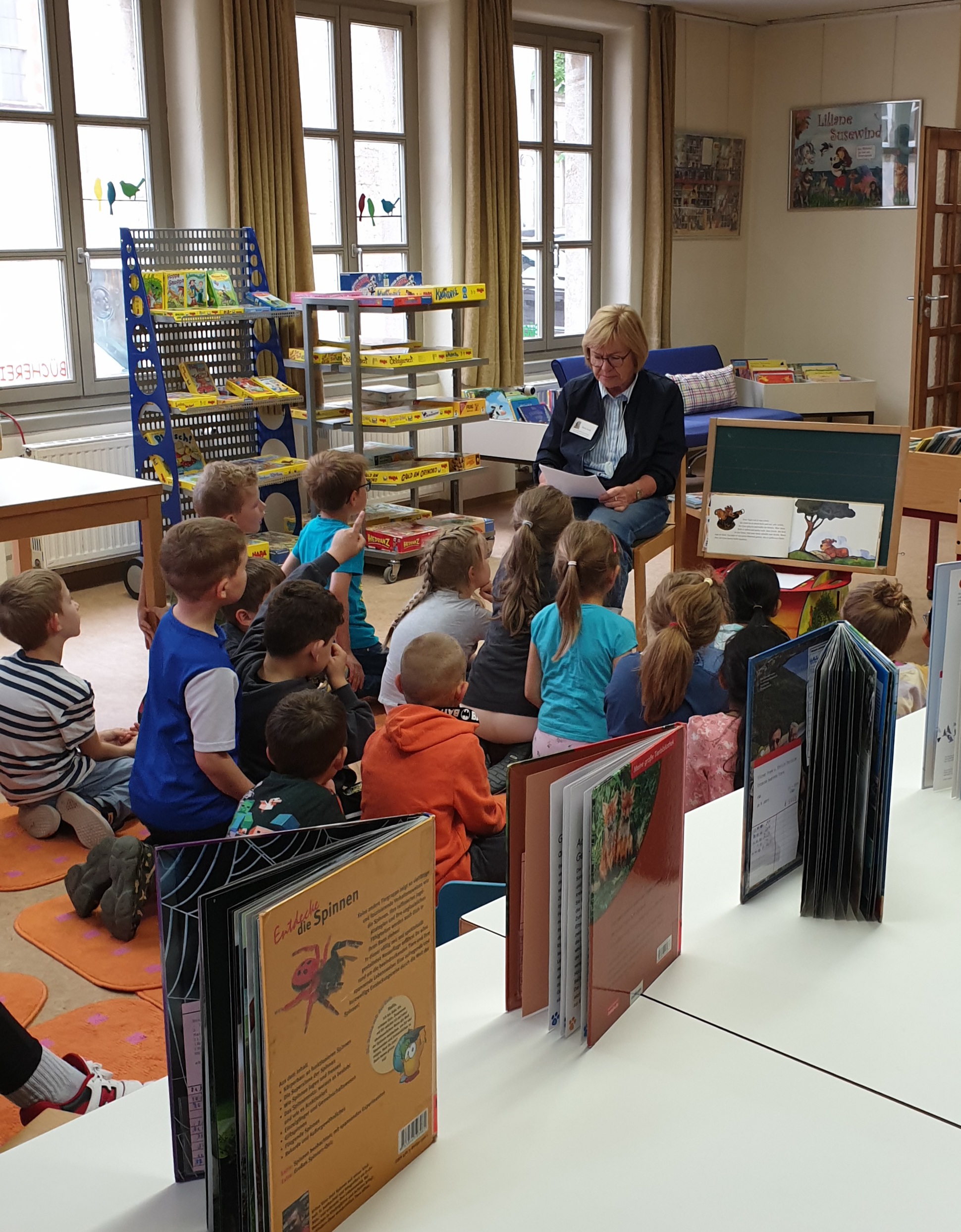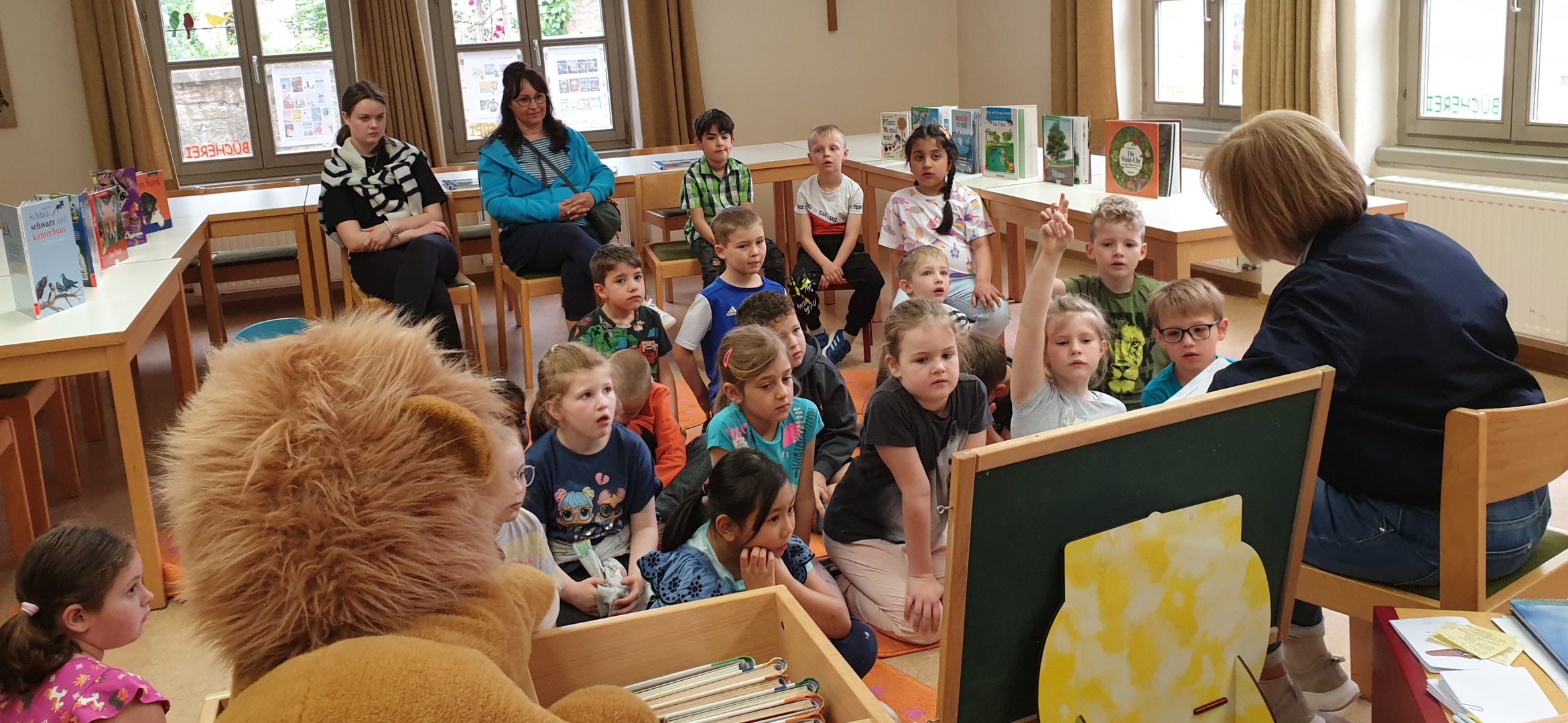 Es ist schon eine gute Tradition, dass die ersten Klassen der Karl-Ludwig-von-Guttenberg-Grundschule Bad Neustadt zu einer Schnupperstunde in unsere Bücherei kommen. Aufmerksam und wissbegierig erkundeten die Kinder die Büchereiräume und bei der Mitmachgeschichte waren alle gespannt und mit Freude bei der Sache. Es blieb auch noch genug Zeit um in den Bücherregalen zu stöbern und ein Lieblingsbuch mit nach Hause zu nehmen. Schule und Bücherei haben das gleiche Ziel: Kinder für das Lesen zu begeistern.